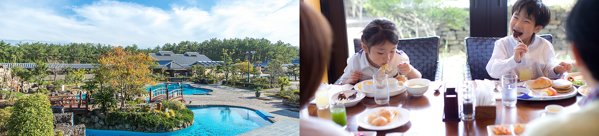 The all-new Pine Terrace’s Miyazaki Regional theme highlights the wonderful taste of Miyazaki-grown food. This buffet-style restaurant features local cuisine crafted from traditional Miyazaki fruits and vegetables, award-winning Miyazaki beef, rich seafood nurtured in the Kuroshio Current off Miyazaki’s scenic coast, and other mouth-watering treats from Miyazaki’s treasure trove of tastes in world-class dishes that bring out the absolute best in each delicious ingredient.
