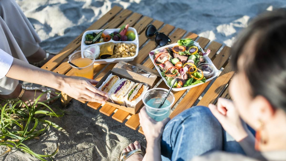波の音を聞きながら、ビーチでのんびりと過ごすことができる美しい人工ビーチです。南ビーチには、人気のバーガーハウス「The BEACHBURGER HOUSE」もあり、ハンバーガーやドリンクなどのテイクアウトが可能です。