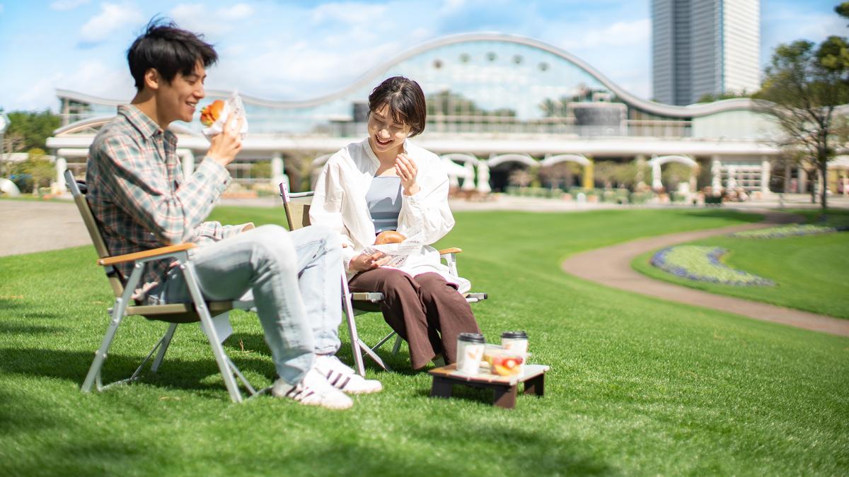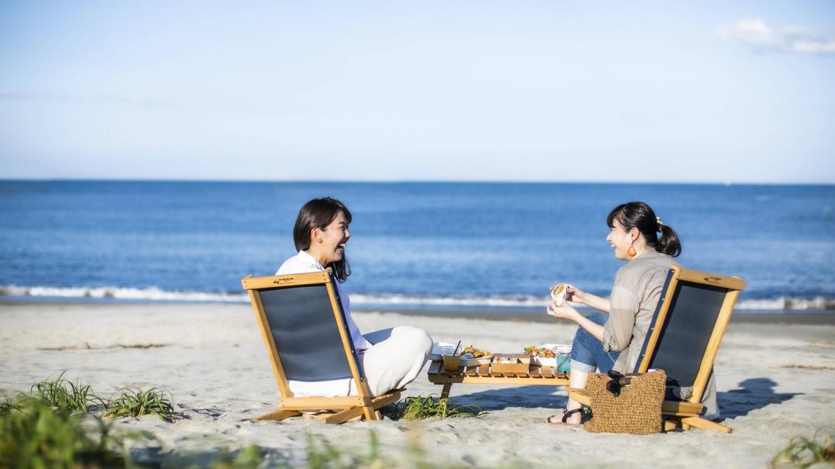 近隣施設の「フローランテ宮崎」「サンビーチ 一ツ葉」は、スタッフいちおしの、まさに”チェアリング“にぴったりのスポット。気持ちの良い芝の上にイスを置き、木陰で本を読んだり、美味しいテイクアウトを楽しんだり、ビーチでイスに座って水平線を眺めてみたり。絶景スポットで非日常を楽しむことができます。