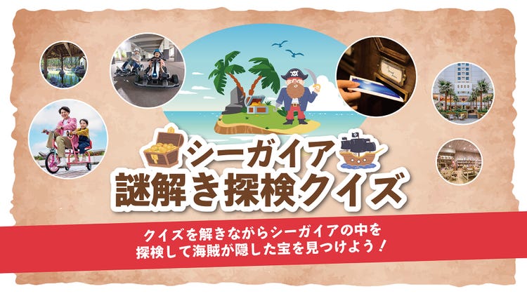 クイズを解きながらシーガイアの中を探検して海賊が隠した宝を見つけよう!