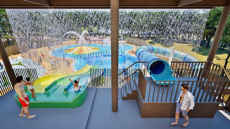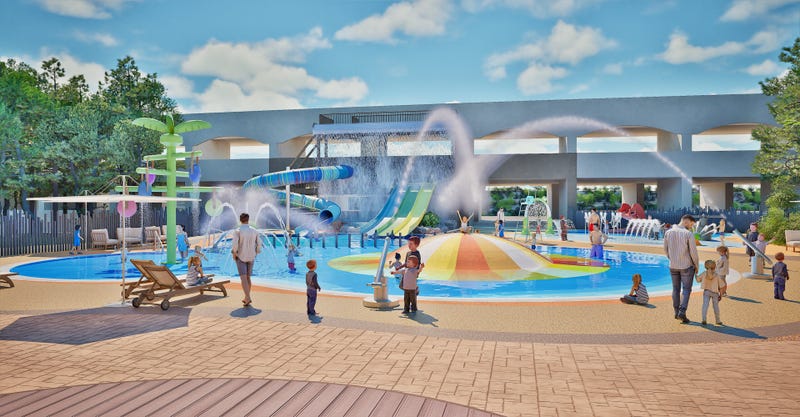 システムモールから流れ落ちるウォーターフォールを背景に、水しぶきと笑い声があふれる、これまでにない子どもの遊び場が誕生します。
