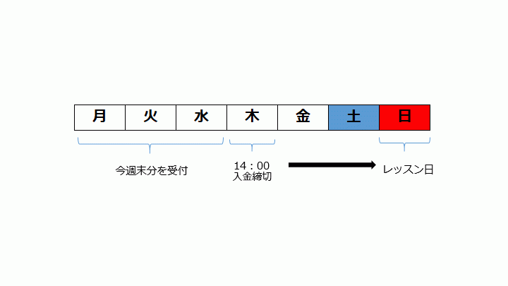 間近でのお申し込みの場合、レッスン前週の木曜日までに振込を完了してください。
