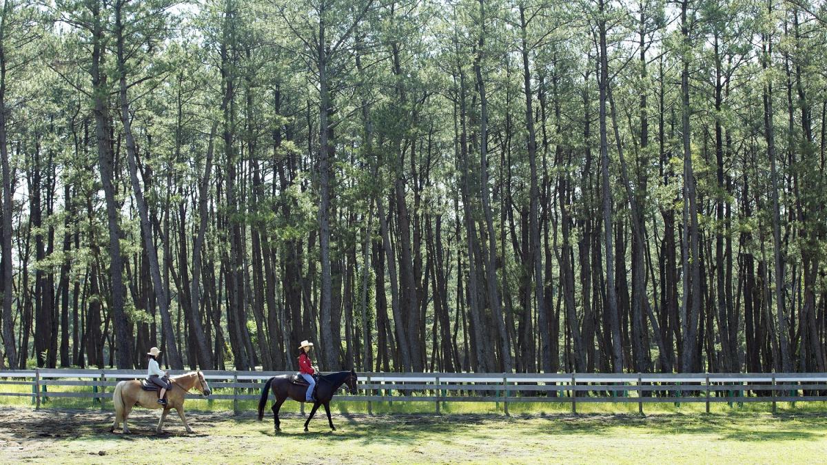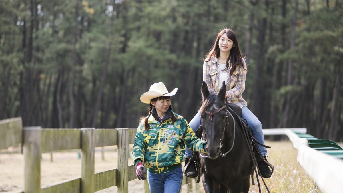黒松林に囲まれた緑あふれる場所にある乗馬クラブ。初心者から本格的に乗りたい方まで、気軽に乗馬体験をお楽しみいただけます。また見学だけでも可能で、愛くるしい目や馬の様子を見るだけでも癒されます。