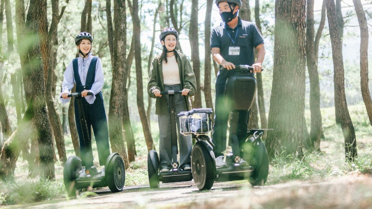 松林を眺めながら美味しい空気を身体の中にたっぷり入れて大自然を満喫。セグウェイ社公認インストラクターが、シーガイア周辺の自然や宮崎の神話について語りながら、セグウェイで散策するツアーです。