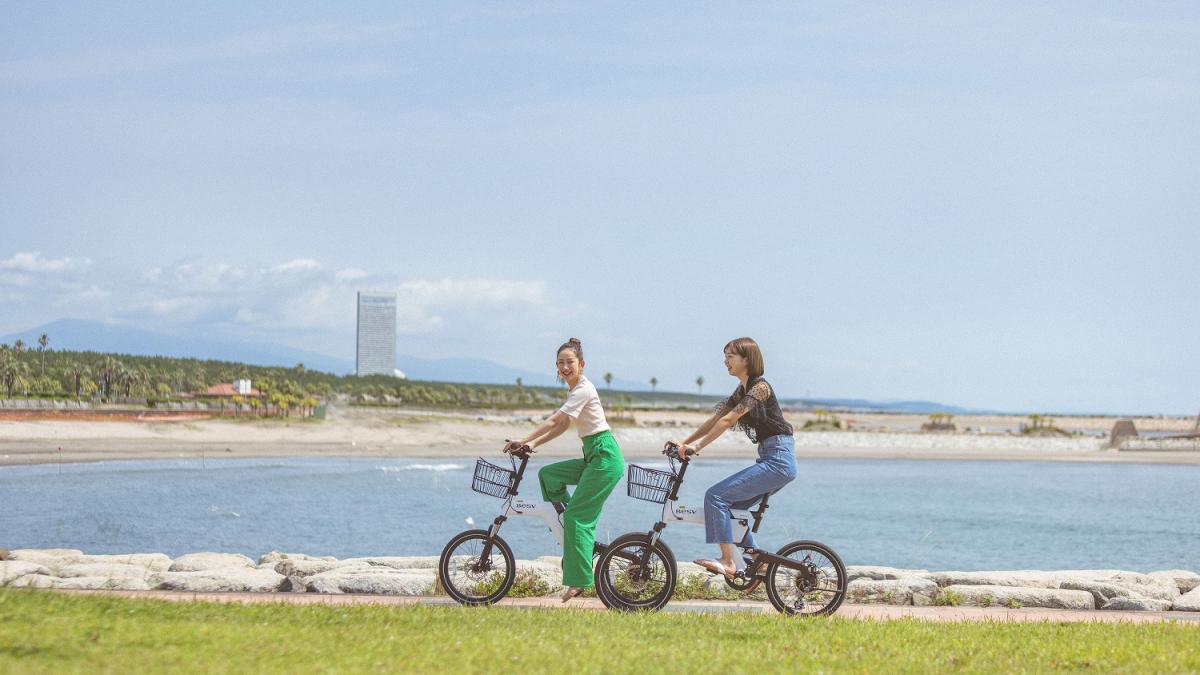 自転車に乗って芝生広場や松林、海岸を散策しませんか?