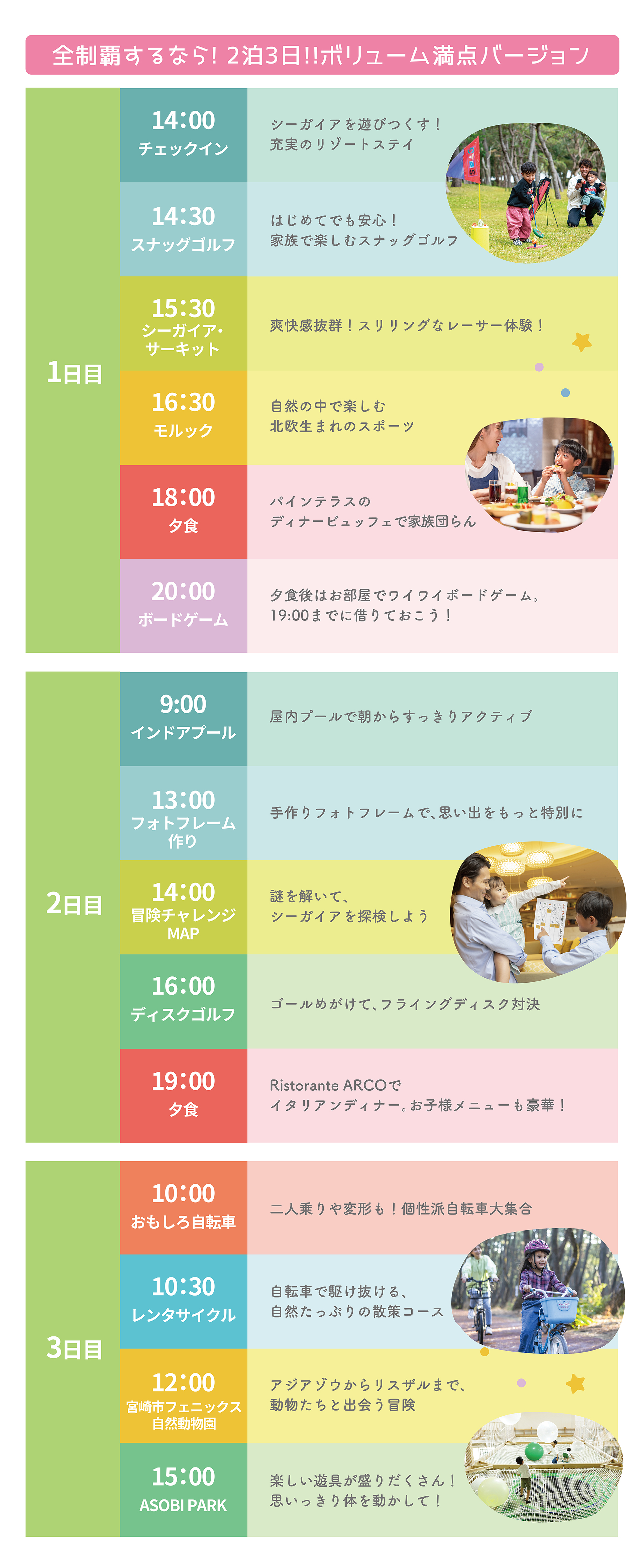 インドアプール/シーガイア・サーキット/おもしろ自転車/レンタサイクル1時間/モルック2時間