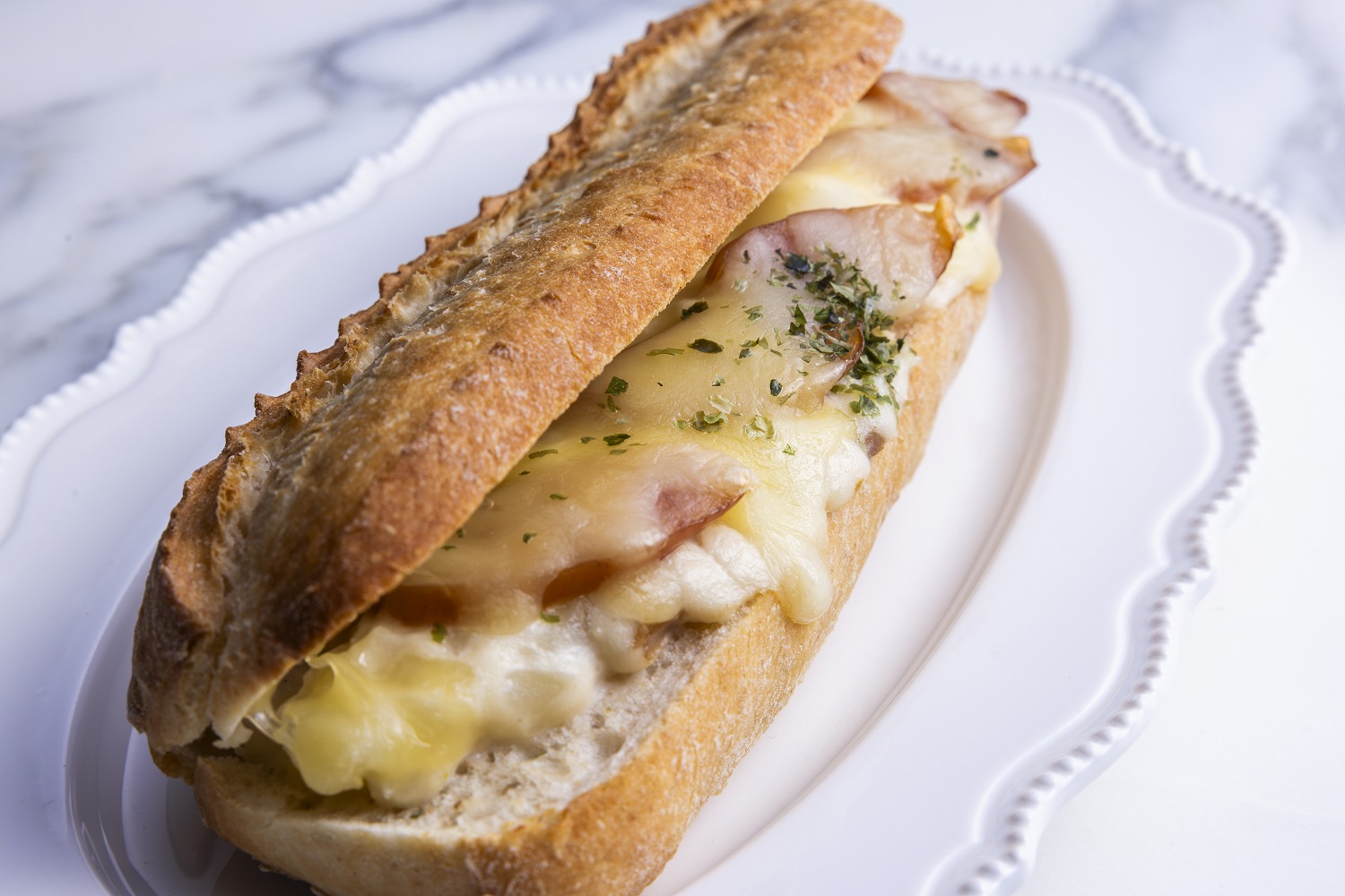 香ばしいバゲットに、旨味たっぷりの3種のきのこソース、ソーセージ、ポテトサラダ、コク深いチーズをとじ込めて。ほくほくとろり、冬にぴったりの贅沢サンドです。