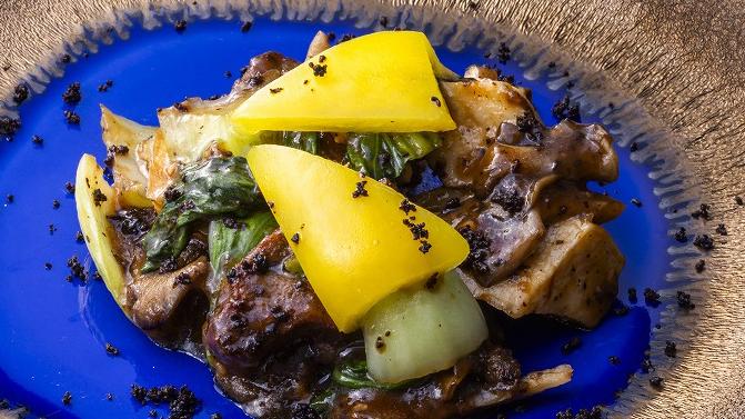 ・宮崎ハーブ牛とキノコの発酵黒豆炒め