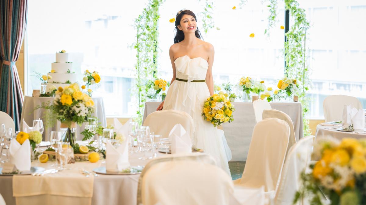 ホテルらしい明るいインテリアの会場は、親しい方だけをお招きする少人数結婚式に最適の大きさ。