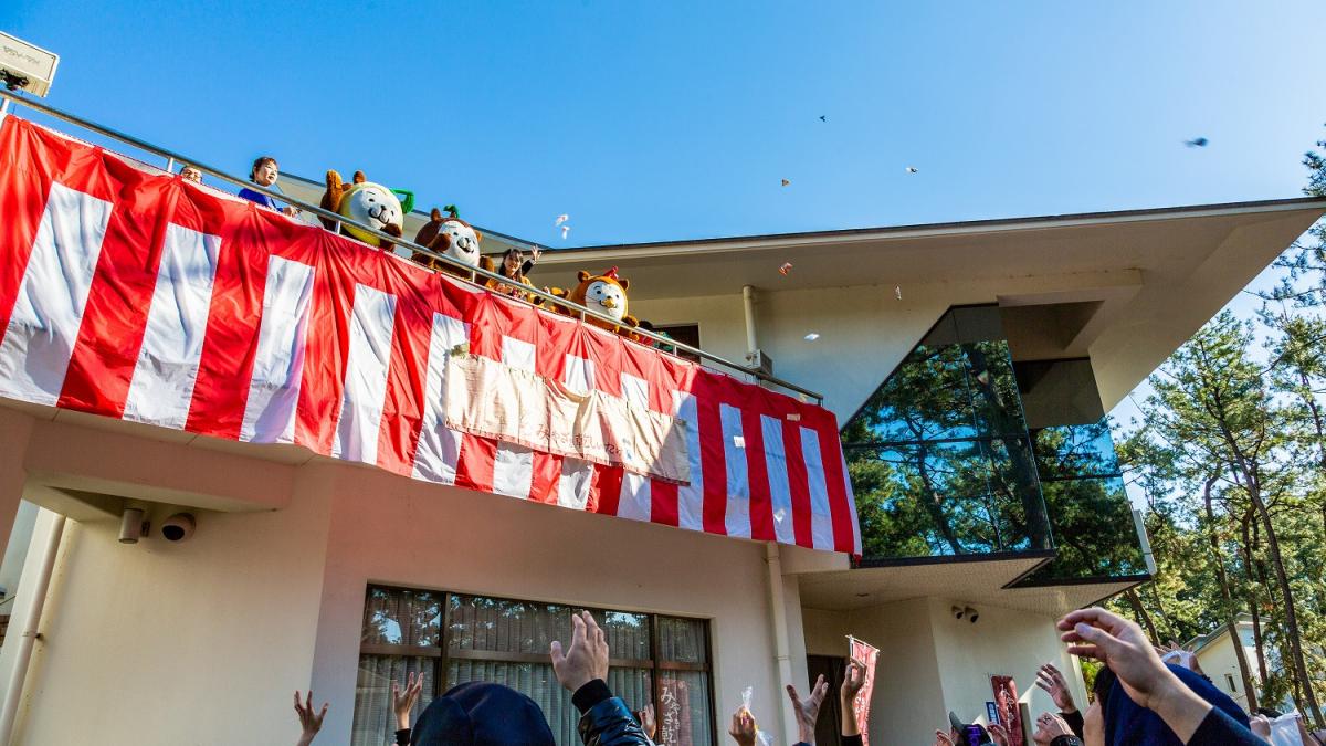 宮崎では「せんぐまき」と呼び、皆さまに福をまく縁起の良い行事です。お餅や「なば」、お菓子などたくさんGETしよう!