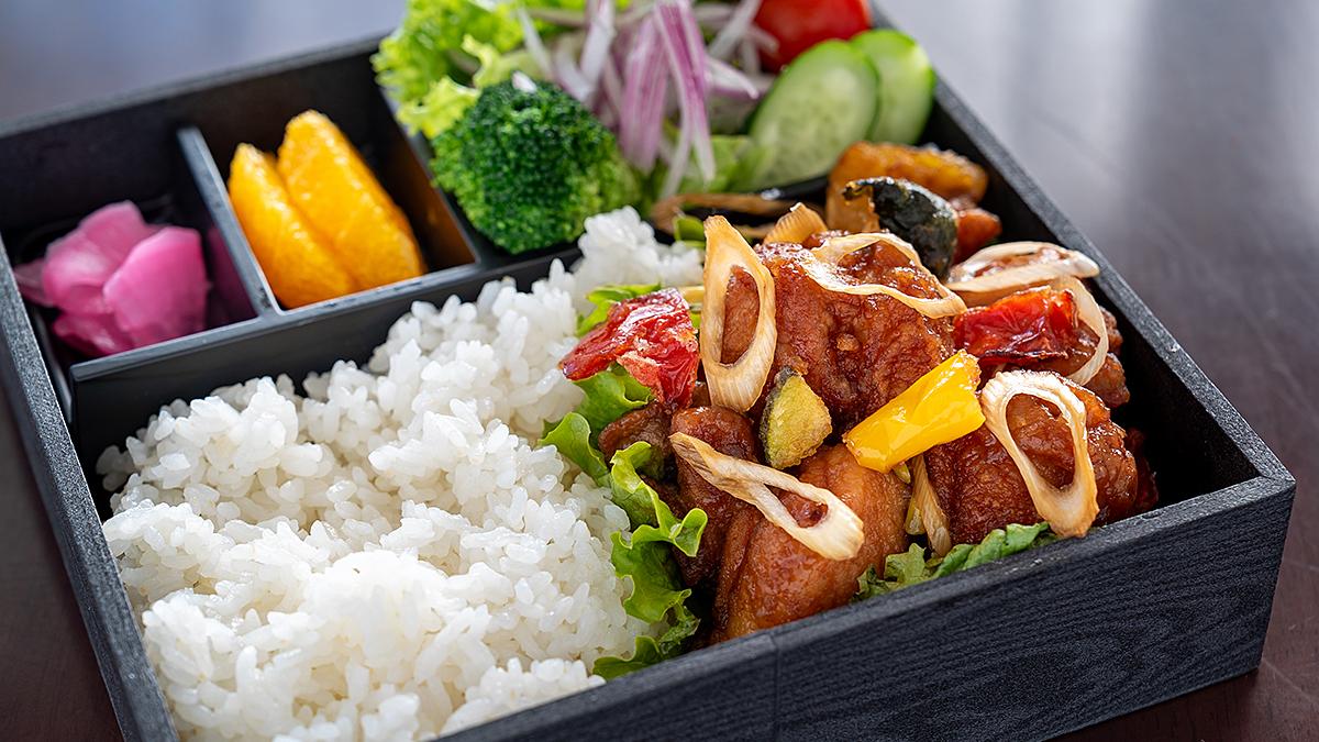 ローストビーフや、海老と野菜のチリソース、クロワッサンサンドなど、シェフこだわりのメニューを詰めました。