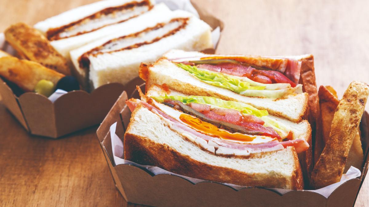 ランチや軽食にぴったり!風待ちテラスのサンドイッチは、クラブサンドと柔らかなポークのカツサンドの2種類をご用意しております。