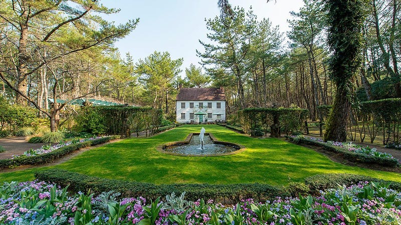松林の中にひっそりと佇む、英国式庭園。庭園の中央に位置するガーデンハウス は4つの異なる壁面で構成されており、壁面に面した庭がそれぞれにデザインさ れています。