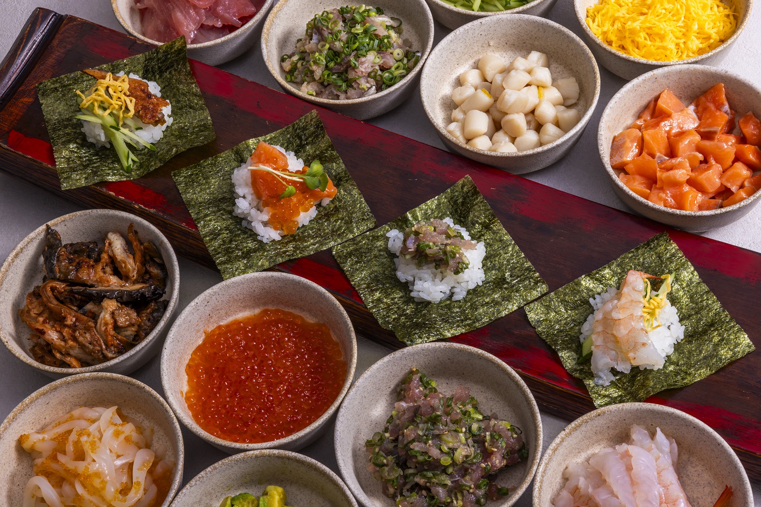 目の前で焼き上げる宮崎牛やロブスターの鉄板焼きなどのシェフアクションメニュー、オリジナルの海鮮丼が作れる海幸どんぶりコーナー、パティシエ自慢のスイーツなど、お好きなものをお好きなだけお楽しみいただける贅沢ディナーはいかがですか。