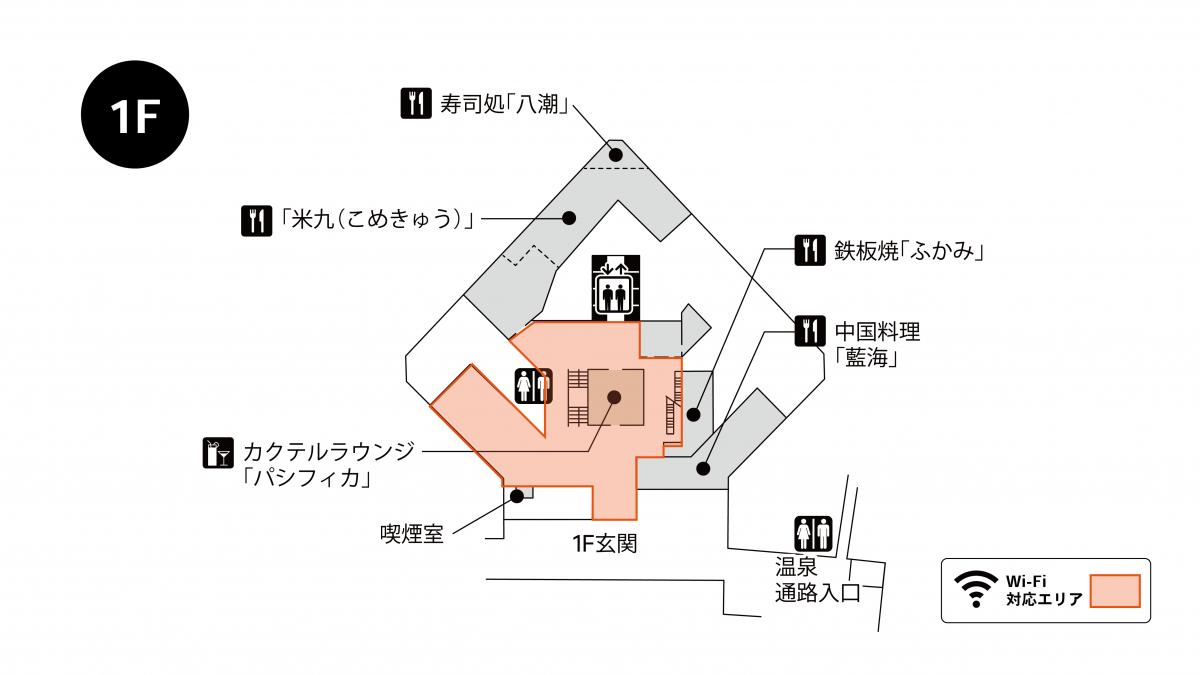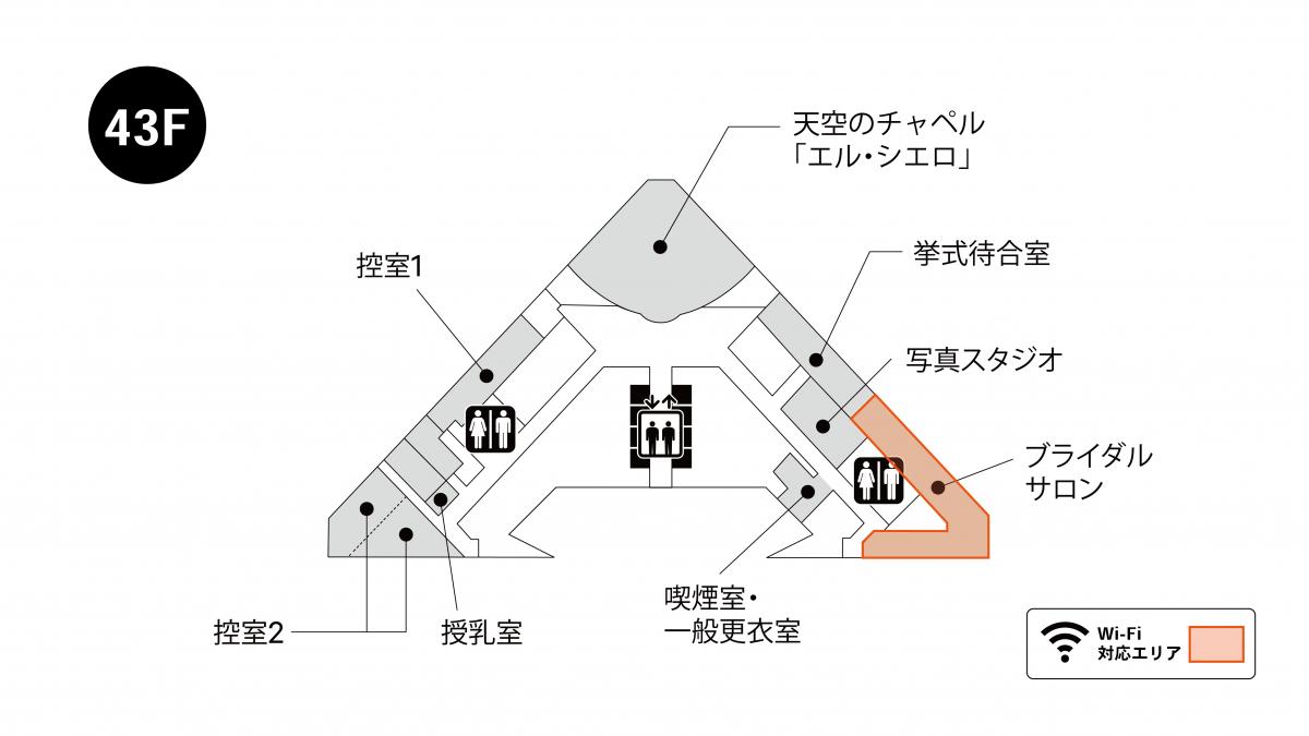 ホテルの1F、2F、3F、43F各フロアでは、無料のWi-Fiをご利用いただけます。