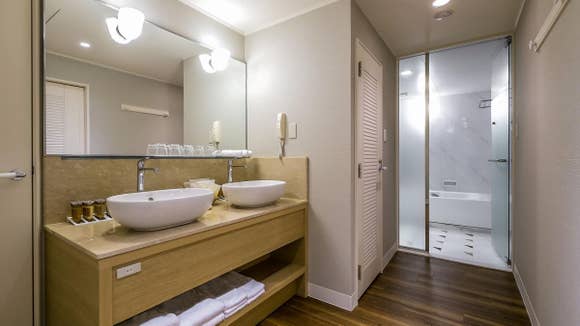 | アメニティ | ヘアシャンプー/ヘアコンディショナー/ボディウォッシュ/ハンドソープ/歯ブラシ/カミソリ/コットン&綿棒/ヘアブラシ/ボディタオル ※ヘアゴムはリクエストでのご準備がございます。 |