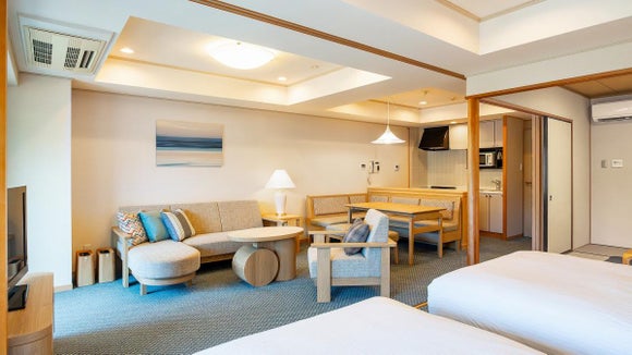 畳の心地よさはそのままに、現代的なデザインとやさしい色合いが調和した客室で、ゆったりとしたひとときをお過ごしください。
