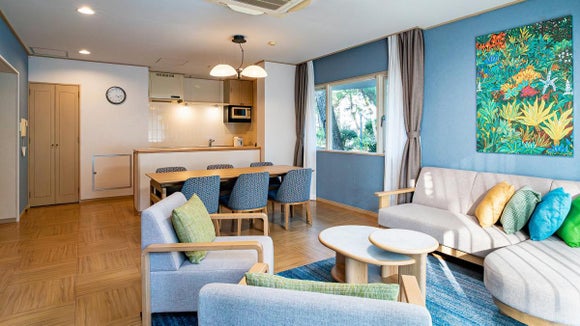 家具を刷新し、ナチュラルモダンクラシックの要素を取り入れた、落ち着きと上質さが調和した空間に生まれ変わります。心ほどける森の時間を、ぜひ新しくなったコテージでご体感ください。