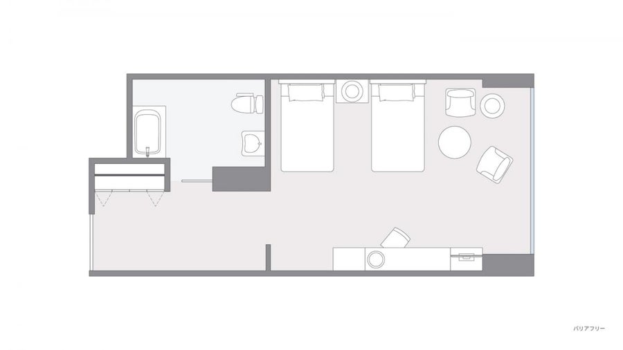 広々としたアプローチとワイドな導線を確保し、車いすご使用時もより利用しやすい仕様へ部分的に改修を行った客室です。