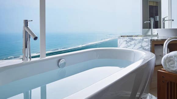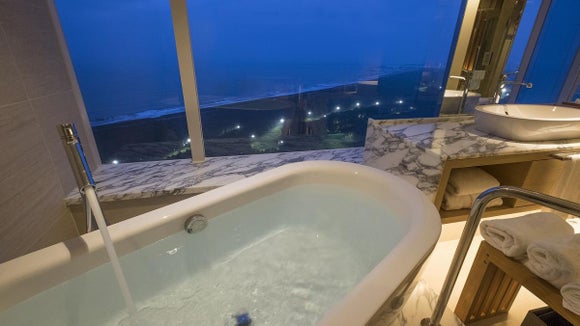 天空のビューバスで誰にも邪魔されない、オンリーワンのリゾート気分をいっそうかきたてるお部屋です。