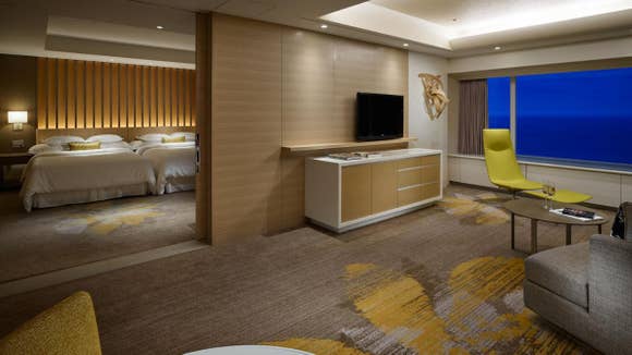 | 設備 | 空調コントロール/ベッド/バス・シャワー/トイレ/スマートテレビ/室内Wifi(無料)/室内金庫/IDD電話/ミニバー/電気ケトル/コーヒー・紅茶・お茶セット/ヘアドライヤー/アイロン/作務衣・雪駄/スリッパ/バスタオル/フェイスタオル/ハンドタオル/靴磨きペーパー・靴べら/ソーイングセット/バスローブ |