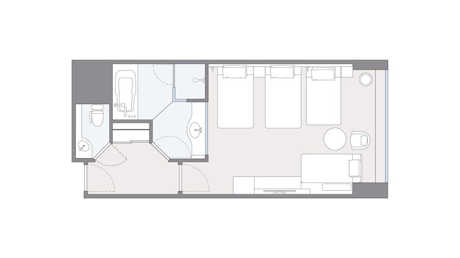 | 設備 | 空調コントロール/ベッド/バス・シャワー/トイレ/スマートテレビ/室内Wifi(無料)/室内金庫/IDD電話/電気ケトル/コーヒー・紅茶セット/ヘアドライヤー/部屋着・スリッパ/バスタオル/フェイスタオル/ハンドタオル/靴ブラシ・靴べら |