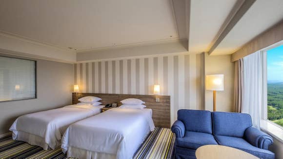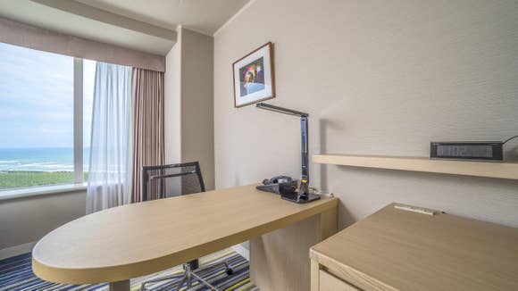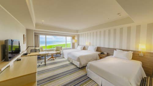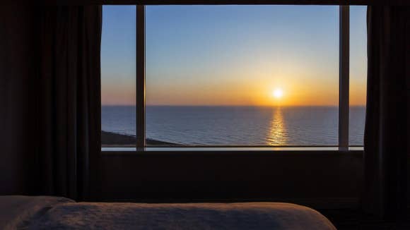 26~35階の高層階に位置している、全室オーシャンビューのデラックスタイプの客室。