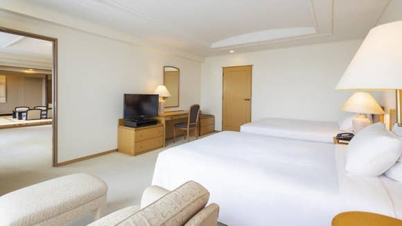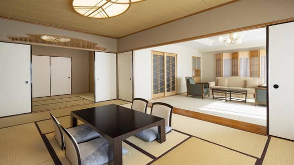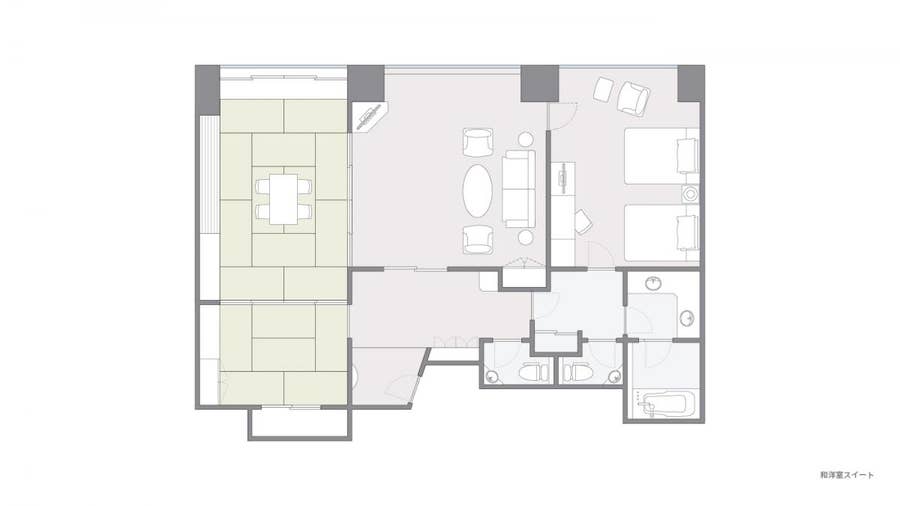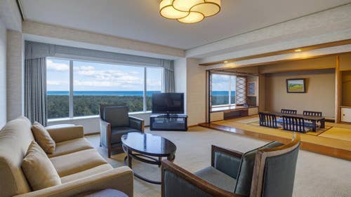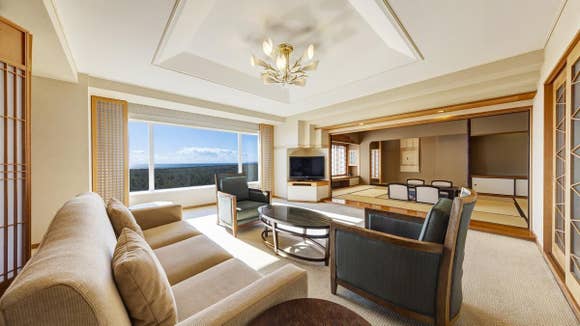 本間12畳と6畳は次の間、リビングルーム、ツインベットルームを備えた146平米の広々としたお部屋です。