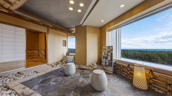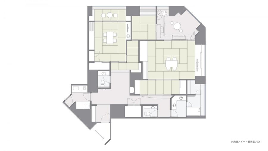 12.5畳もある炉付きの和室でお茶会が催せる、純和室のスイートルーム。