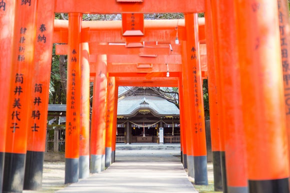 初代天皇の神武天皇を御祭神として祀る神社で、創建は2000年以上前に遡ります。神武天皇の両親である、鵜鷀草葺不合尊(うがやふきあえずのみこと)・玉依姫命(たまよりひめ)も一緒に祀られていることから家内安全や安産・子宝祈願はもちろん、必勝祈願や交通安全祈願に訪れる参拝者が後を絶ちません。灯篭が灯る参道は神秘的な雰囲気が漂い、歩くだけで心身が浄化されたような気分になります。正月三が日には毎年25万人を超える参拝客が訪れる、人気の初詣スポットでもあります。