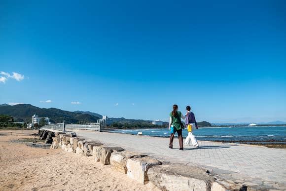 宮崎市青島のほぼ中央に鎮座する神社周囲1.5kmの青島全島が境内地となっている青島神社。恋愛のパワースポットとして広く知られており、全国から恋人たちや女性参拝者が多く訪れます。絵馬で出来たトンネル「祈りの古道」、夫婦ビロウなど、見所やお願いができるスポットもたくさん。さらに、島を囲む国の天然記念物「鬼の洗濯板」など、絶景空間が広がります。