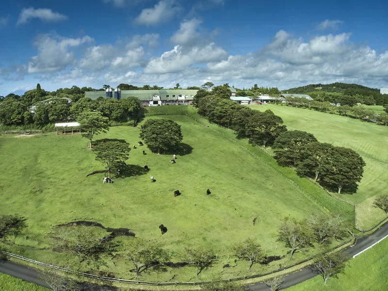 霧島連山の麓に広がる観光牧場「高千穂牧場」。大自然の中で育った動物たちとの触れ合いや、手作り体験、食事やショッピングを楽しむことができます。春にはお花畑にも桜が咲き誇ります。