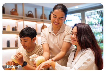- ハーバルポーチを使用したリラクゼーション体験 (香りの体験付き)※着衣にて実施