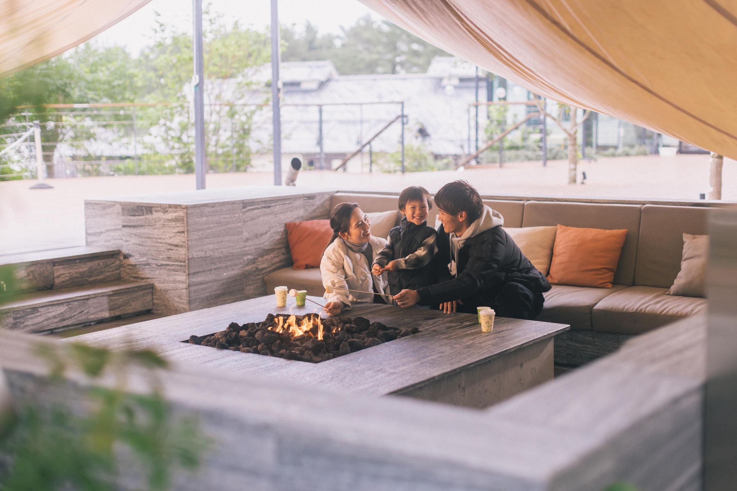 ゆらめく炎を見つめていると、不思議と心が安らいでゆきます。自然のエレメントに包まれた、焚き火を囲むゆったりとしたソファに体を預けると、その空間に溶け込んでしまったかのような錯覚を覚えます。