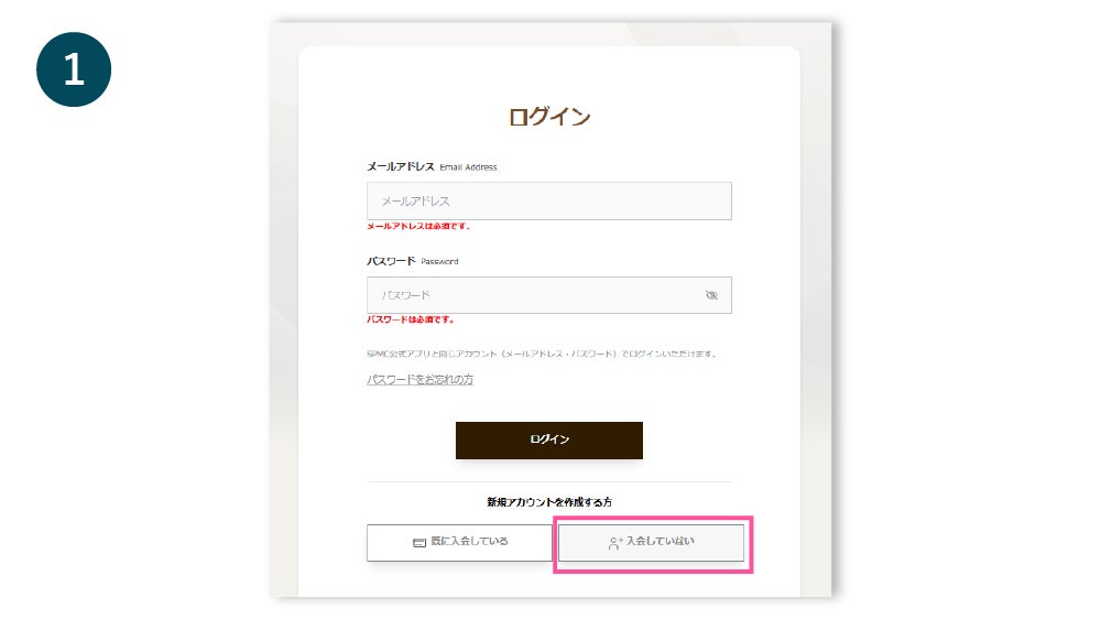 SPMC会員専用サイトを開き、「新規アカウントを作成する方」>「入会していない」をクリック