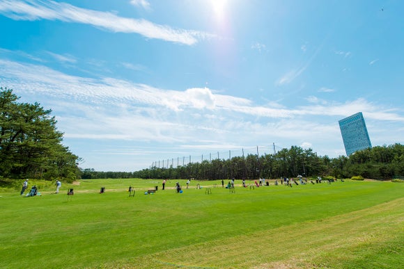 宮崎の青空の下、洋芝から打てるティーグラウンドを備えた350ヤードのドライビングレンジをはじめ、