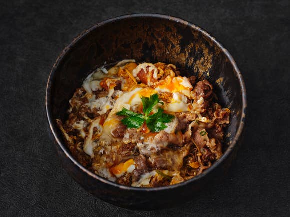 卵とじを半熟に仕上げることで、全ての具材とお米がふんわりと混ざり合い、最後の一粒まで美味しい。 食べた人にしか分からない、”超贅沢な卵かけごはん”のような牛丼です。 5年に一度行われる和牛のオリンピック「全国和牛能力共進会」において、 4大会連続、内閣総理大臣賞を受賞した宮崎牛を使用しています。 是非ご賞味ください。