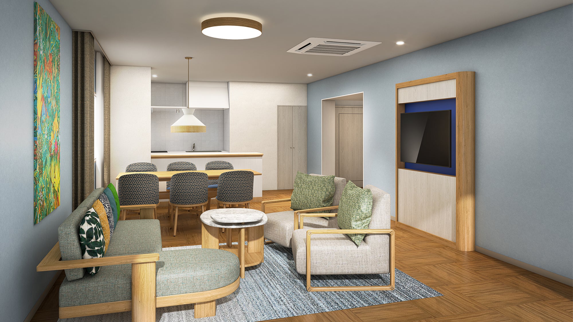 総面積117㎡でひろびろしたファミリータイプは、2025年7月にリニューアル!家具を刷新し、ナチュラルモダンクラシックの要素を取り入れた、落ち着きと上質さが調和した空間に生まれ変わりました。