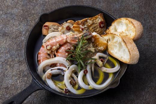 鯛、海老、帆立、烏賊をアヒージョまたはホイル焼きスタイルでお楽しみいただけます