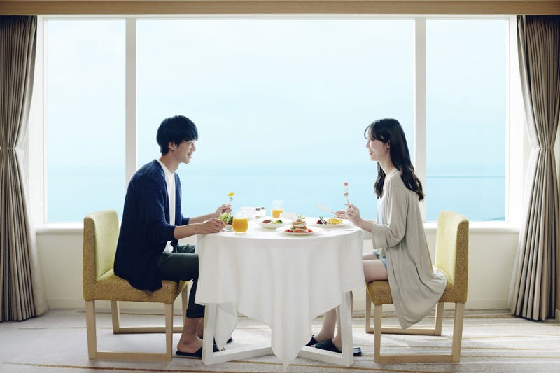 窓の外に広がる絶景の前にシェフこだわりの料理を並べれば、客室があっという間に特別なプライベートレストランに。さわやかな朝日を浴びながら、ゆっくりとお食事をお楽しみいただけます。