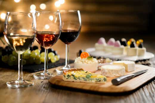 ■料金に含まれるもの/ワイン(スパークリング、白、赤)5杯、プティフールとセレクトチーズ合わせて5品