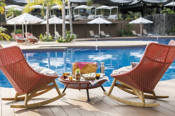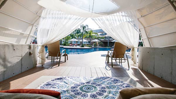 季節によってインテリアが変わる水辺のガゼボでは、南国リゾートを想わせる多彩な植物やプールを臨めます。
