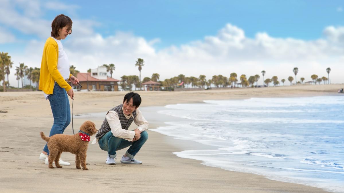 リゾート周辺には、ペットと過ごせるスポットがたくさん!最寄りのサンビーチ一ツ葉まで徒歩で約10分の道のりをペットとお散歩♪木洩れ日と木の香りが心地よい広大な黒松林には「フィトンチッド」があふれており疲労回復や細胞の活性化、心をリラックスさせる効果も。