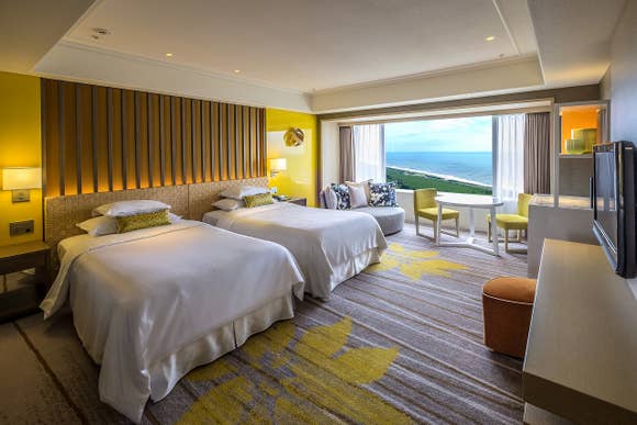 ベッドサイドには大きな回転式ソファーをご用意。お部屋での会話、大きな窓からの絶景を心ゆくまでお楽しみいただけます。