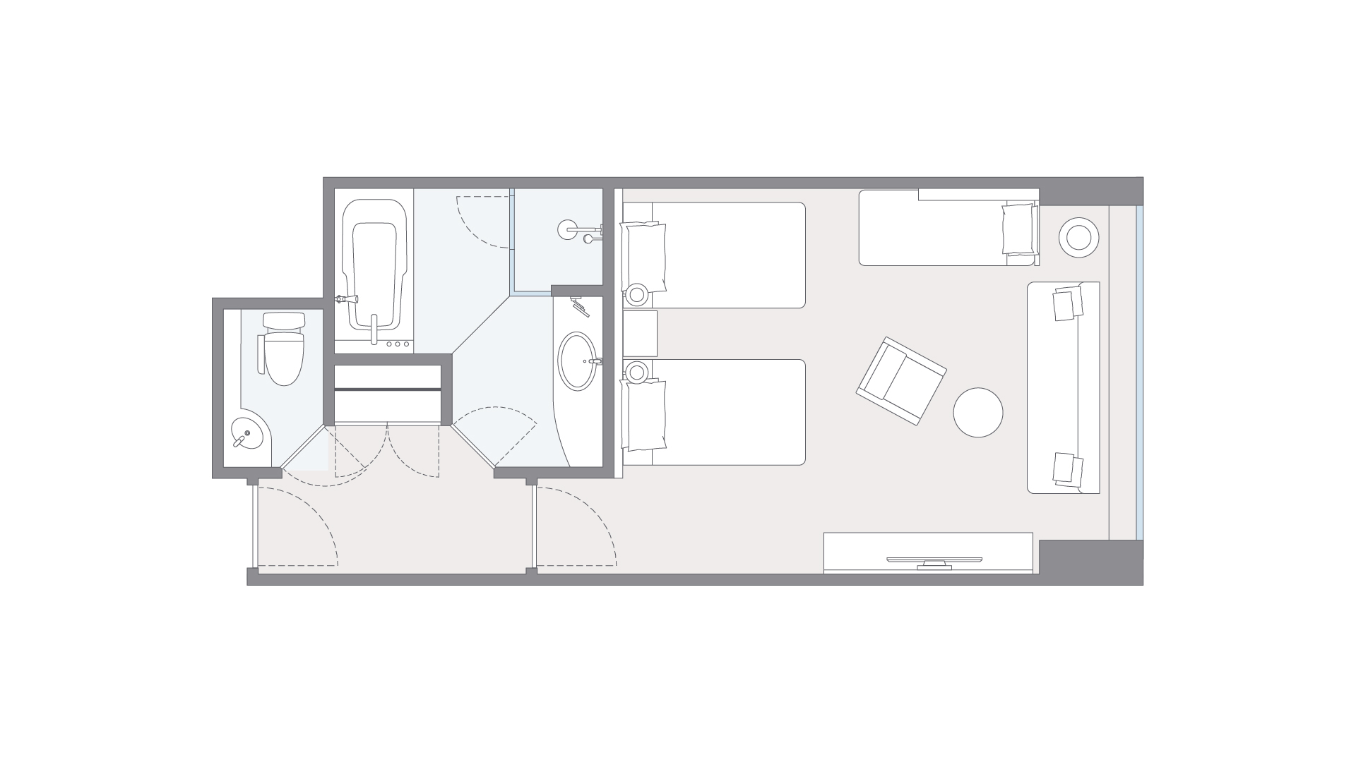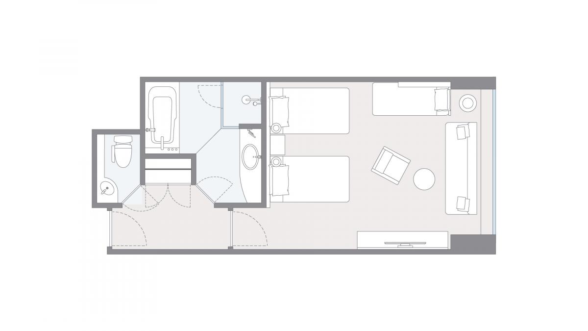 | 設備 | 空調コントロール/ベッド/バス・シャワー/トイレ/スマートテレビ/室内Wifi(無料)/室内金庫/IDD電話/ミニバー/電気ケトル/コーヒー・紅茶・お茶セット/ヘアドライヤー/アイロン/作務衣・雪駄/スリッパ/バスタオル/フェイスタオル/ハンドタオル/靴磨きペーパー・靴べら/ソーイングセット |