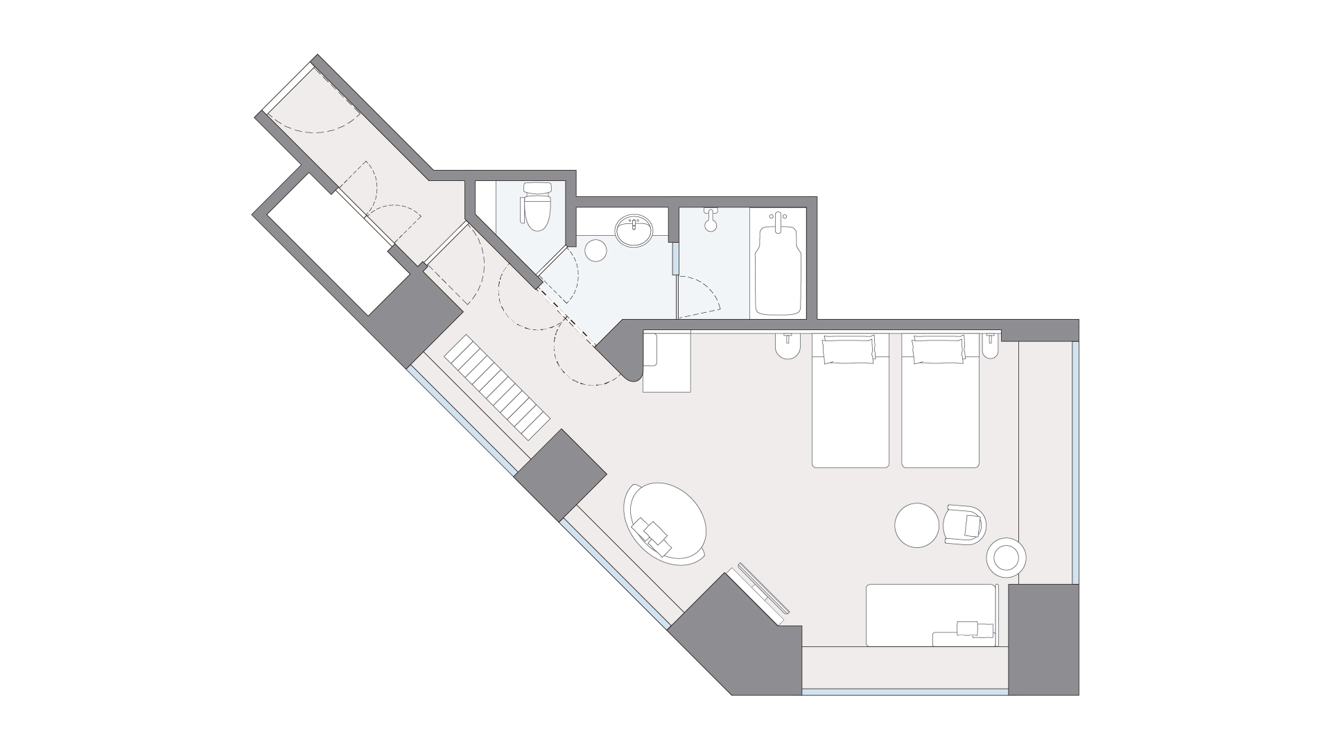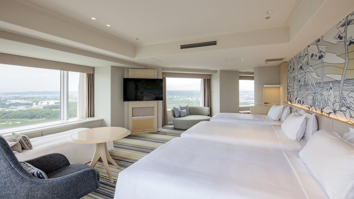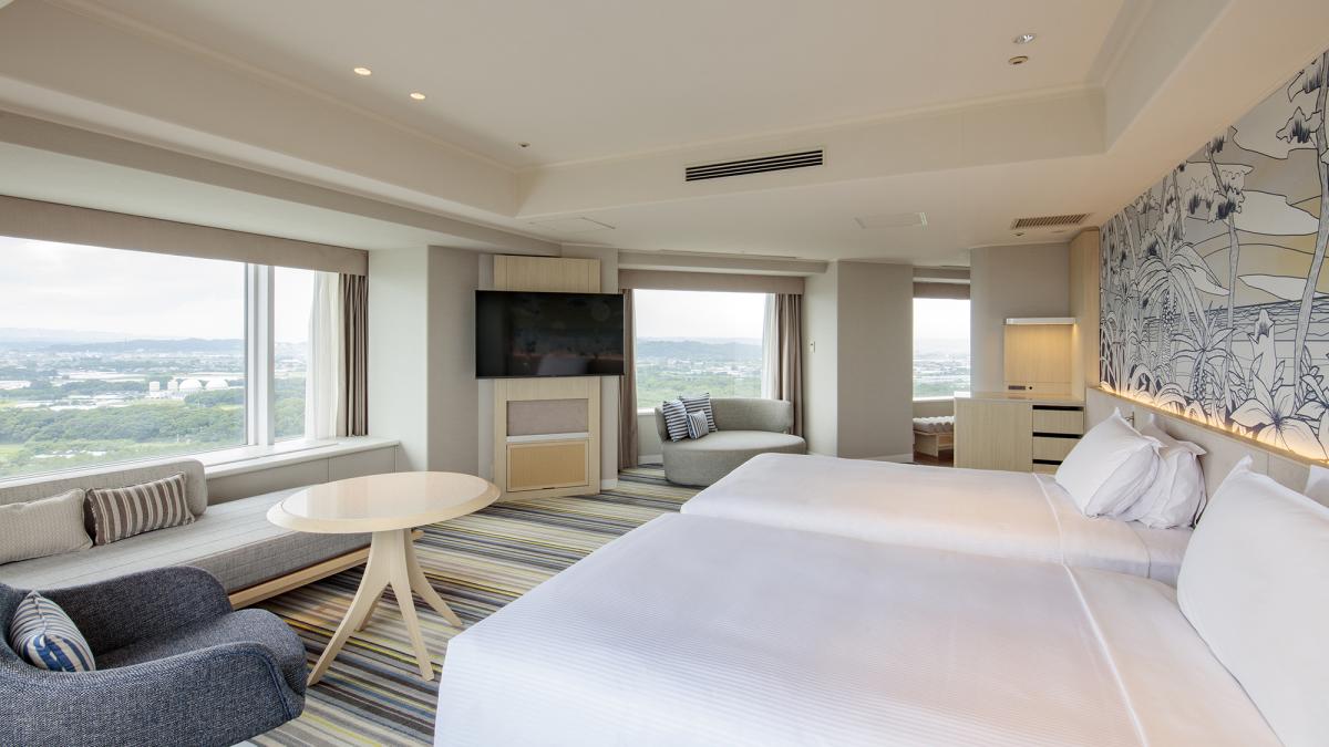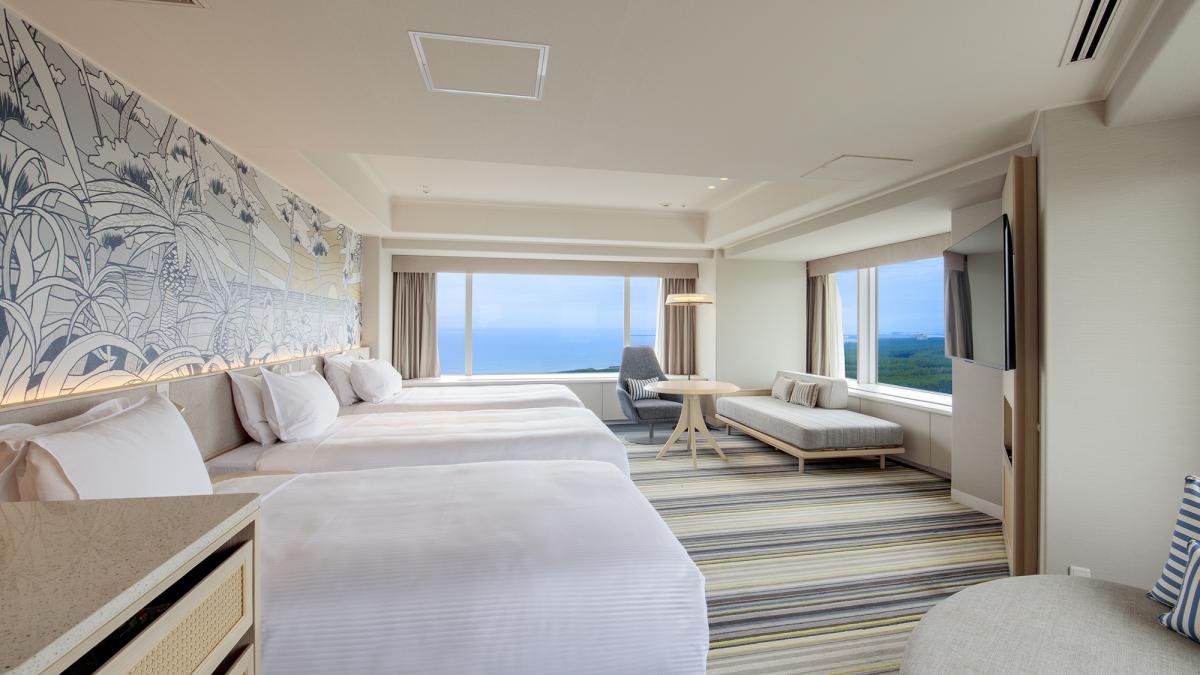 人気のコーナー部屋が、デイベッドを新たに配置することで、4名で過ごすのに最適な客室へと生まれ変わりました。