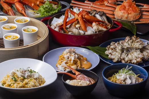 ガーデンビュッフェ「パインテラス」でディナービュッフェ。チキン南蛮やレタス巻き、冷や汁などの宮崎郷土料理はもちろん、宮崎牛のローストビーフ、サラダバーなど、豊富なメニューをご堪能いただけます。12-2月はカニフェア開催中!