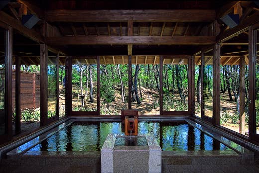 ご宿泊者は、温泉施設「松泉宮」前の湯『新月』、奥の湯『月読』を無料でご利用いただけます。地下1000mの深さ、1千万年前の地層から湧き出すお湯は、太古の海の化石成分が溶け出したミネラル豊富な美人の湯を堪能!