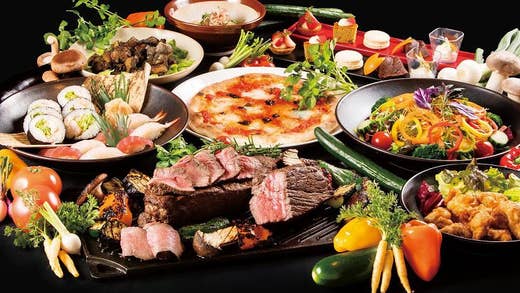 ガーデンビュッフェ「パインテラス」でディナービュッフェ。チキン南蛮などの宮崎郷土料理はもちろん、ピザやパスタ、お寿司、スイーツまで豊富なメニューで大満足♪