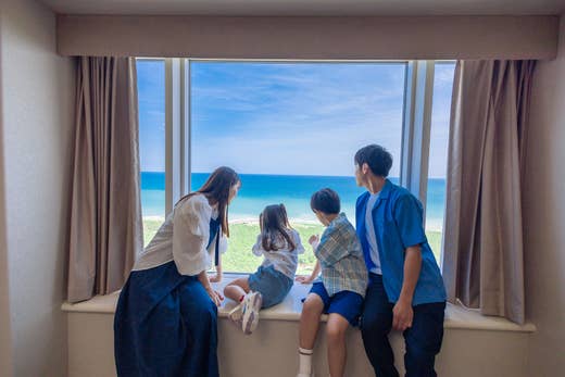 ホテルにチェックイン。すべての客室がオーシャンビュー!広々とした開放的な空間、大きなベッド、大きな窓!家族でおしゃべりしながら、絶景とともにリゾート気分もUP♪